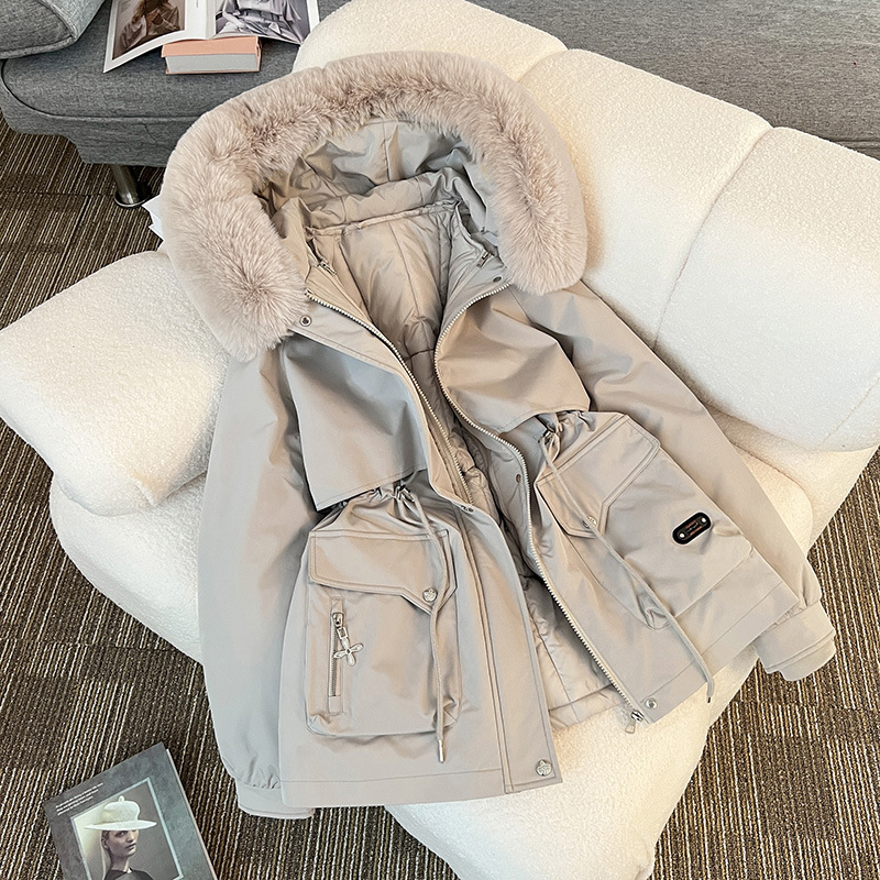 Moteriški drabužiai, vienas drabužis, trijų drabužių parka, moteriški trumpi 2024 m. nauji medvilniniai drabužiai, žieminė medvilninė paminkštinta striukė, žieminis paltas