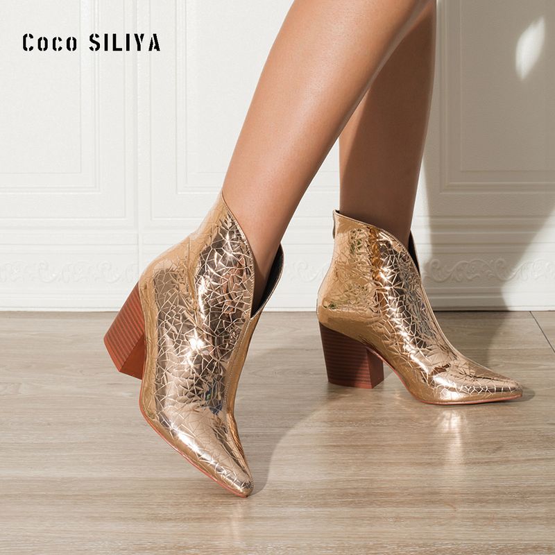 Women's Snake Print Pointed Toe Ankle Boots - Chunky Heel Bare Booties For Fall/Winter