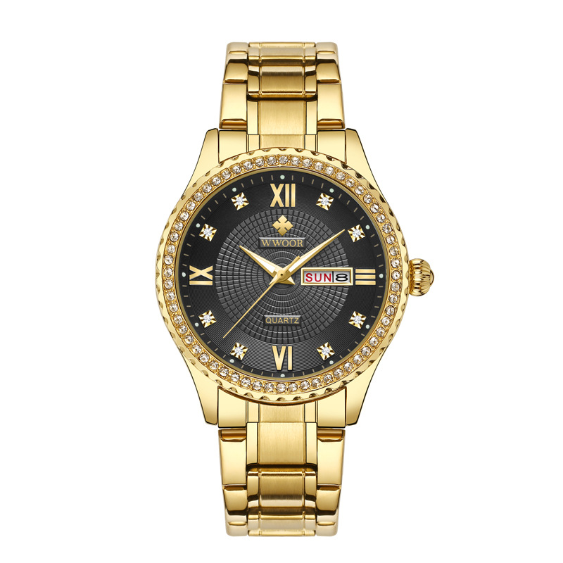 WWOOR8856 poros laikrodis, vandeniui atsparus kvarcinio plieno dirželis, moteriškas laikrodis, verslo kalendorius, vyriškas laikrodžio laikrodis