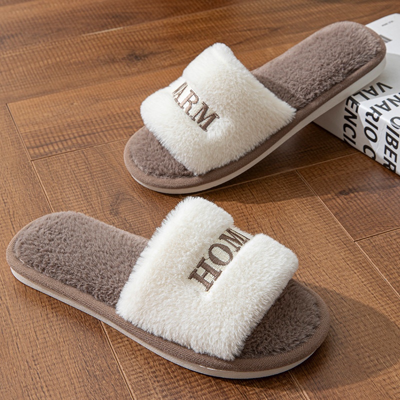 Zees Fairy Peak Creative Embroidery Ins Warm Women's Winter One-Word Furry Cotton Home Indoor Wooden Floor Non-Slip Slippers